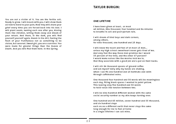You are not a victim of it. You are the fertile soil. Ready to grow. I will mourn with you. I will show them all how to bend to your pain. How they will share your grief every time you are forced back into his bed. I will plant seeds, naming each one after you, kissing them like children, letting them sleep and dream of your return. And there, in the dark, you will find yourself yourself again. Hands in the dirt, feeling the flesh of your fruitfulness not as something to be stolen, but savored. Sweet girl, you are a survivor. You were made for greater things than the Queen of Death. And you will find them here. In the Spring.