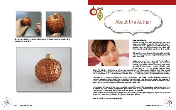 To complete the bauble stick small cachous into the centre of the sequin using piping gel or royal icing 136 | Christmas Bauble