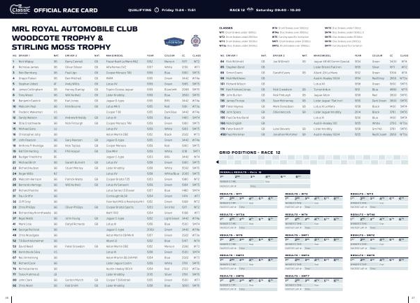WT4 : Drum brakes over 3000cc WT4a : Disc brakes over 3000cc WT5 : Cars by specific invitation SMT1 : Drum brakes under 2000cc SMT2 : Drum brakes over 2000cc