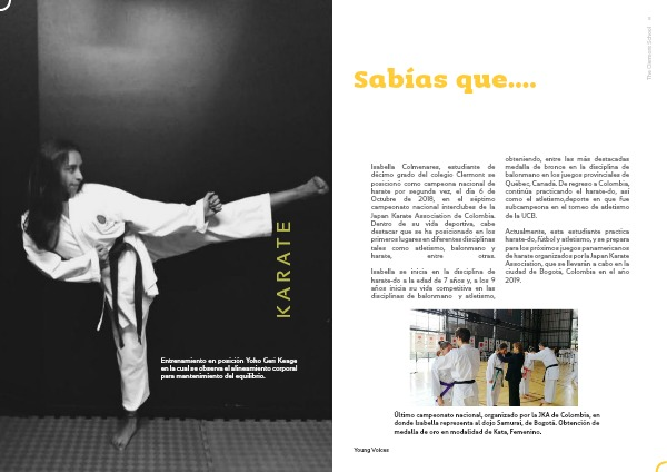 Isabella Colmenares, estudiante de décimo grado del colegio Clermont se posicionó como campeona nacional de karate por segunda vez, el día 6 de Octubre de 2018, en el séptimo campeonato nacional interclubes de la Japan Karate Association de Colombia. Dentro de su vida deportiva, cabe destacar que se ha posicionado en los primeros lugares en diferentes disciplinas tales como atletismo, balonmano y karate, entre otras.