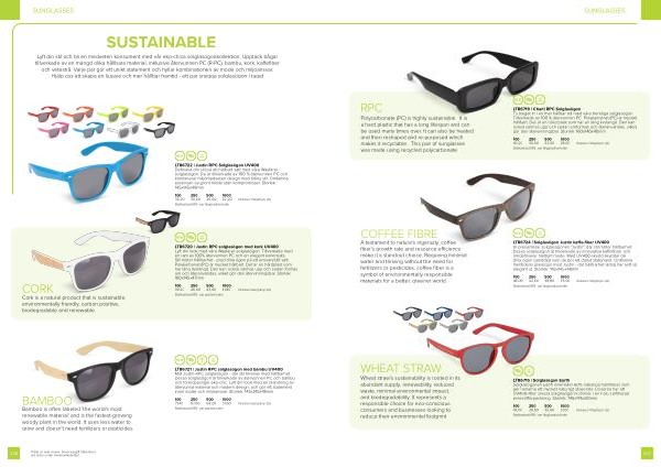 Lyft din stil och bli en medveten konsument med vår eko-chica solglasögonkollektion . Upptäck bågar tillverkade av en mängd olika hållbara material , inklusive återvunnen PC ( R-PC ), bambu , kork , kaffefiber och vetestrå . Varje par gör ett unikt statement och hyllar kombinationen av mode och miljöansvar . Hjälp oss att skapa en ljusare och mer hållbar framtid - ett par snygga solglasögon i taget