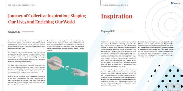 In the end , I came to the conclusion that what gives me inspiration was art . Not a specific artwork but art itself , in most of its forms ; from music to literature , cinema to paintings . Art itself is completely about becoming inspired and inspiring others , because it is the total reflection of life .