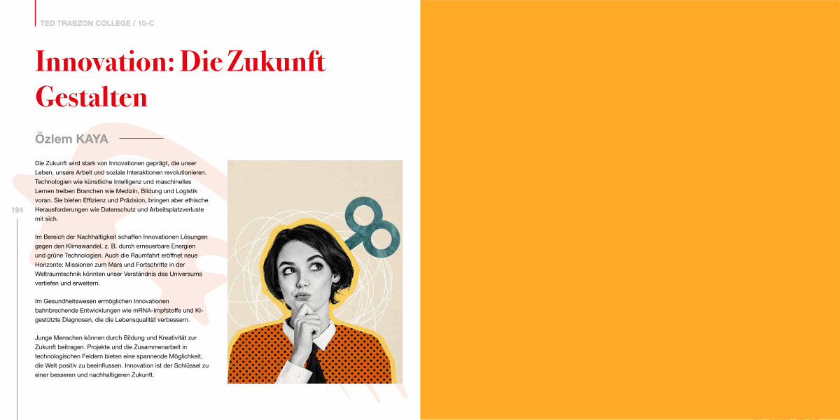 Im Bereich der Nachhaltigkeit schaffen Innovationen Lösungen gegen den Klimawandel, z. B. durch erneuerbare Energien und grüne Technologien. Auch die Raumfahrt eröffnet neue Horizonte: Missionen zum Mars und Fortschritte in der Weltraumtechnik könnten unser Verständnis des Universums vertiefen und erweitern.