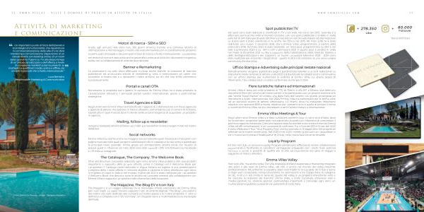 Periodicamente vengono pubblicate pagine pubblicitarie tabellari e articoli redazionali su importanti riviste cartacee di settore , e dal 2020 è stata attivata la collaborazione continuativa con un ufficio stampa per aumentare la visibilità di Emma Villas sui diversi target di riferimento . Tale collaborazione è stata confermata anche per il 2024 .