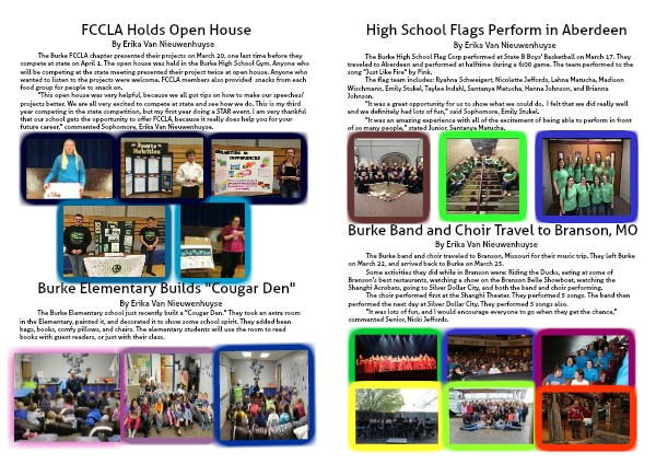The Burke band and choir traveled to Branson, Missouri for their music trip. They left Burke on March 22, and arrived back to Burke on March 25.