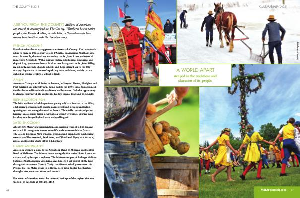 CULTURAL HERITAGE A WORLD APART steeped in the traditions and character of its people. VisitAroostook.com VisitAroostook.com 47