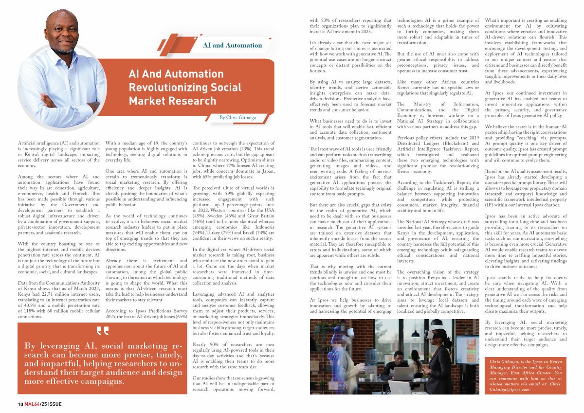 Chris Githaiga, is the Ipsos in Kenya Managing Director and the Country Manager, East Africa Cluster. You can commune with him on this or related matters via email at: Chris. Githaiga @ ipsos. com.