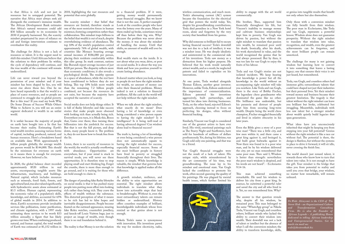 The answer to that question reveals why, despite all his wisdom, he remained poor. This man belonged to the same“ WhatsApp group” as Nikola Tesla, Vincent van Gogh, and countless others; brilliant minds who lacked the ability to convert their wisdom into wealth. Their downfall was not a lack of talent or intellect but the absence of what I call the conversion mindset; the ability to transform knowledge, skills, or genius into tangible results that benefit not only others but also themselves.