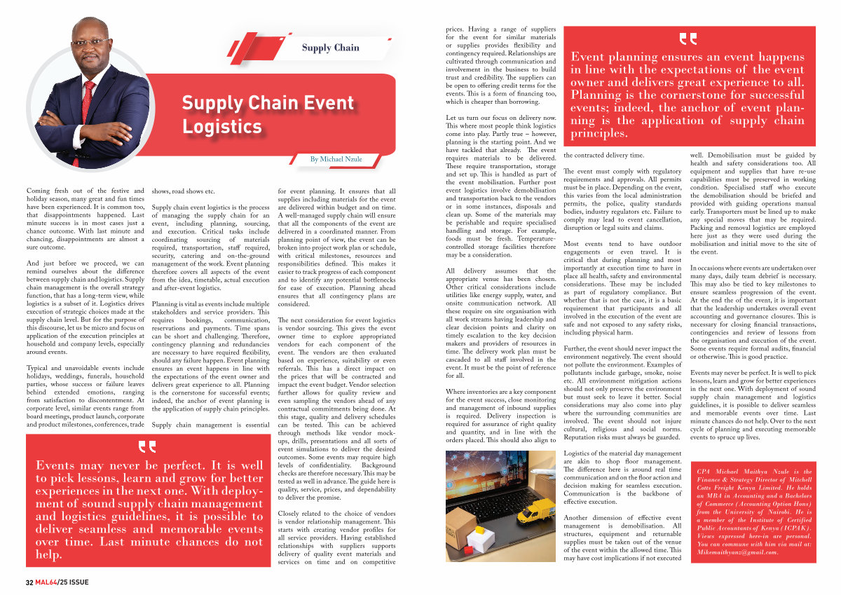 Events may never be perfect. It is well to pick lessons, learn and grow for better experiences in the next one. With deployment of sound supply chain management and logistics guidelines, it is possible to deliver seamless and memorable events over time. Last minute chances do not help. Over to the next cycle of planning and executing memorable events to spruce up lives.