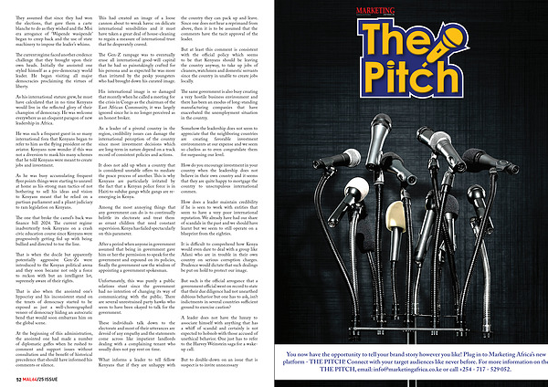 You now have the opportunity to tell your brand story however you like! Plug in to Marketing Africa’ s new platform- THE PITCH! Connect with your target audiences like never before. For more information on the THE PITCH, email: info @ marketingafrica. co. ke or call + 254- 717- 529 052.