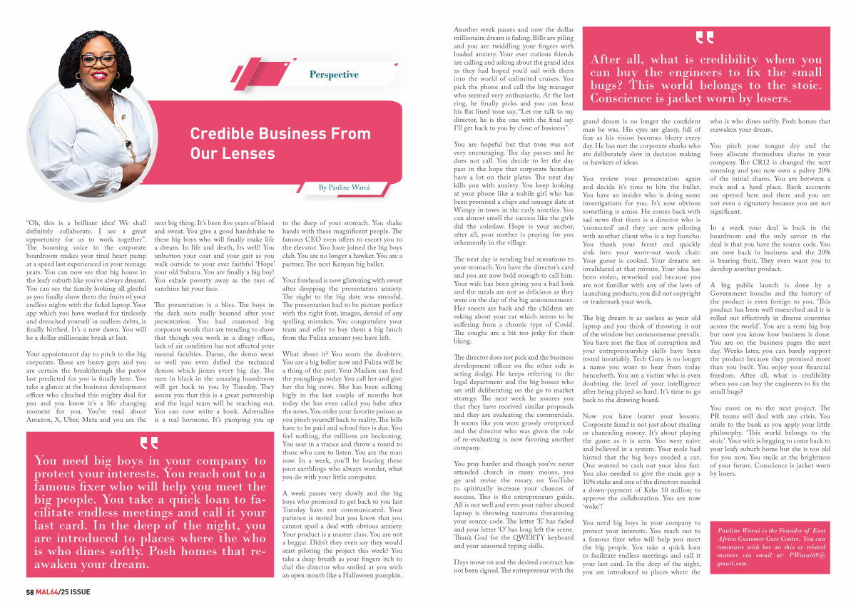 Your appointment day to pitch to the big corporate. These are heavy guys and you are certain the breakthrough the pastor last predicted for you is finally here. You take a glance at the business development officer who clinched this mighty deal for you and you know it’ s a life changing moment for you. You’ ve read about Amazon, X, Uber, Meta and you are the next big thing. It’ s been five years of blood and sweat. You give a good handshake to these big boys who will finally make life a dream. In life and death, Its well! You unbutton your coat and your gait as you walk outside to your ever faithful‘ Hope’ your old Subaru. You are finally a big boy! You exhale poverty away as the rays of sunshine hit your face.