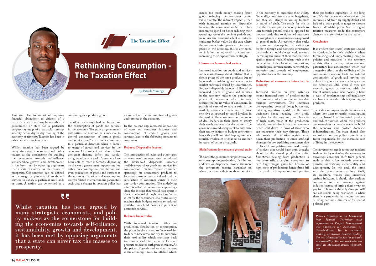 Patrick Maninga is an Economist from Maseno University with experience in Project Management who advocates for Economics of Sustainability. He is currently working at Naivas Limited leading General Merchandise Section towards sustainability. You can reach him via mail at: Maningapatrick97 @ gmail. com.
