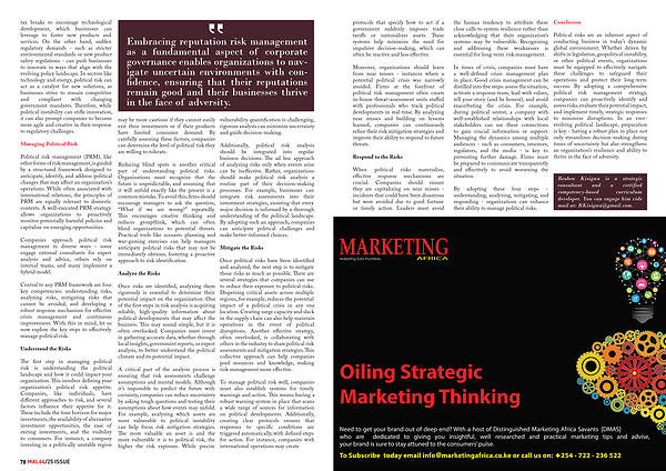 Additionally, political risk analysis should be integrated into regular business decisions. The ad hoc approach of analyzing risks only when events arise can be ineffective. Rather, organizations should make political risk analysis a routine part of their decision-making processes. For example, businesses can integrate risk assessments into their investment strategies, ensuring that every major decision is informed by a thorough understanding of the political landscape. By adopting such an approach, companies can anticipate political challenges and make better-informed choices.