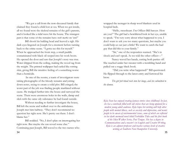 Kyla Stan has enjoyed creating fantasy stories since childhood . In fact , she has a notebook filled with old stories that are being updated for a modern young adult audience . Kyla hopes her writing will help other people with mental illness , such as anxiety and depression , and wants people to be aware of environmental issues , some of which are reflected in her dark mermaid novel titled Forbidden Tides and the first book of the Skin Walker Series , Poet Tongue . She has a degree in Communications and a master ’ s in English and Creative Writing . Kyla is an adjunct professor and teaches various levels of creative writing at Southern New Hampshire University .
