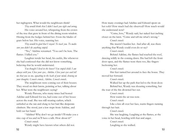 “ No ,” Adeline screamed . “ You can ’ t be here . The flames . I killed you .”