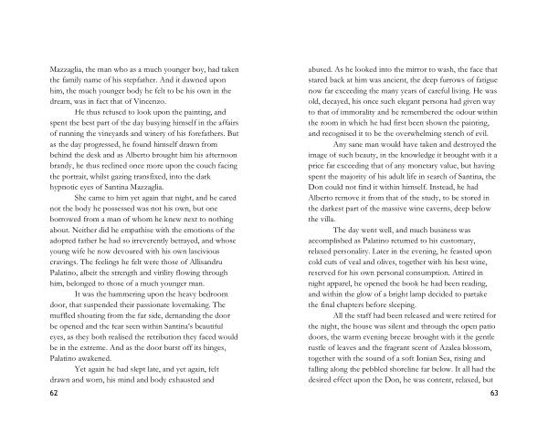 abused . As he looked into the mirror to wash , the face that stared back at him was ancient , the deep furrows of fatigue now far exceeding the many years of careful living . He was old , decayed , his once such elegant persona had given way to that of immorality and he remembered the odour within the room in which he had first been shown the painting , and recognised it to be the overwhelming stench of evil .