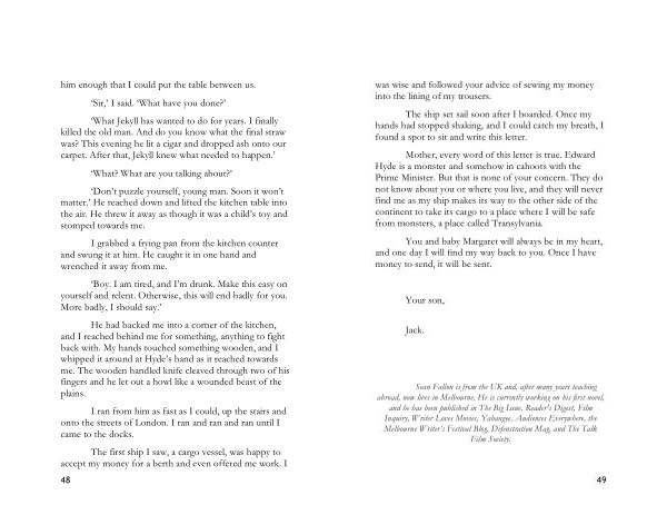 Sean Fallon is from the UK and , after many years teaching abroad , now lives in Melbourne . He is currently working on his first novel , and he has been published in The Big Issue , Reader ' s Digest , Film Inquiry , Writer Loves Movies , Yabangee , Audiences Everywhere , the Melbourne Writer ’ s Festival Blog , Defenstration Mag , and The Talk Film Society .