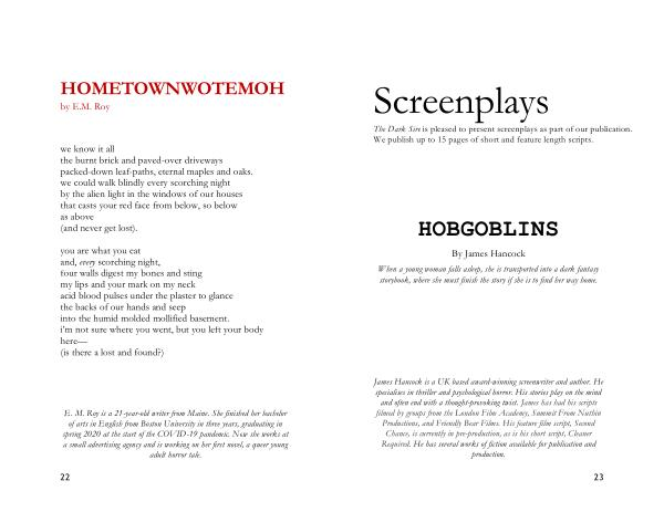 E . M . Roy is a 21-year-old writer from Maine . She finished her bachelor of arts in English from Boston University in three years , graduating in spring 2020 at the start of the COVID-19 pandemic . Now she works at a small advertising agency and is working on her first novel , a queer young adult horror tale .