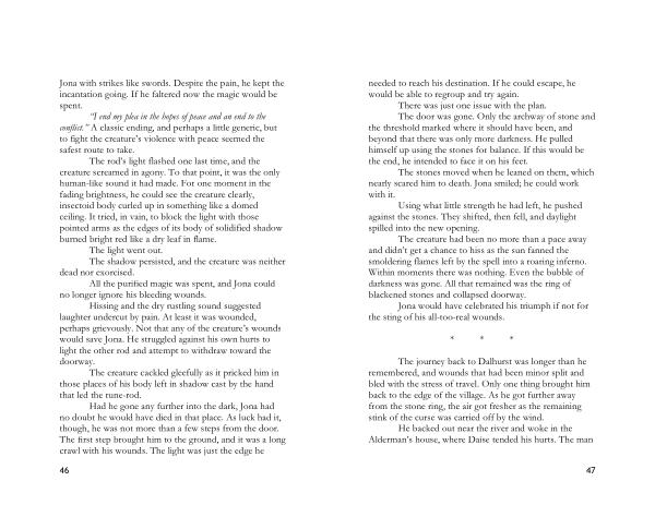 Jona with strikes like swords . Despite the pain , he kept the incantation going . If he faltered now the magic would be spent .