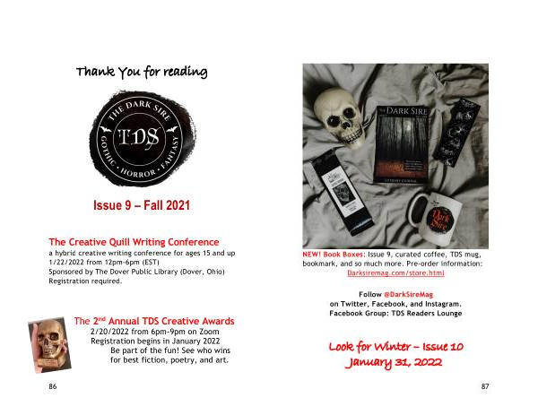 The 2 nd Annual TDS Creative Awards 2 / 20 / 2022 from 6pm-9pm on Zoom Registration begins in January 2022 Be part of the fun ! See who wins for best fiction , poetry , and art .