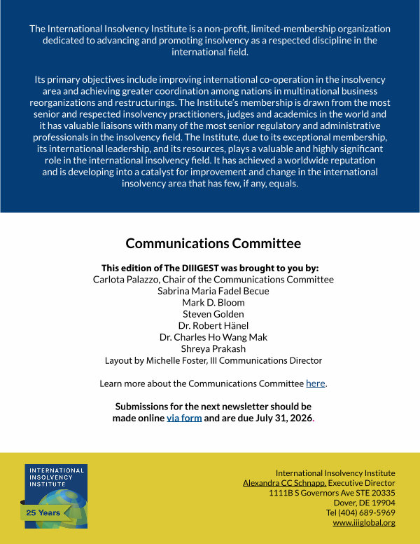 The International Insolvency Institute is a non-profit, limited-membership organization dedicated to advancing and promoting insolvency as a respected discipline in the international field.