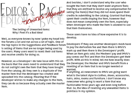 Well, as everyone knows by now I poke my head into the forums a lot and run across a lot of topic. One of the top topics in the Suggestions and Feedback forum is selling of items that are no longer being used by the users. Many users want to resell their old items and receive credits for doing so.
