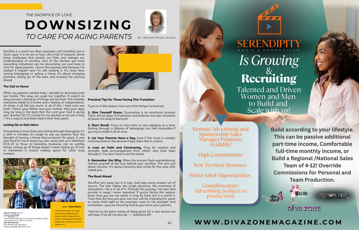 Sacrifice is a word we often associate with hardship, but in God’ s eyes, it is an act of love. Life is full of seasons. Some bring challenges that stretch our faith and reshape our understanding of sacrifice. One of the hardest yet most rewarding transitions can be downsizing our own lives to care for aging parents. I know this journey well because I’ ve walked it myself— and I’ m still walking it. It’ s more than sorting belongings or selling a home. It’ s about changing priorities, letting go of the past, and trusting the journey ahead.
