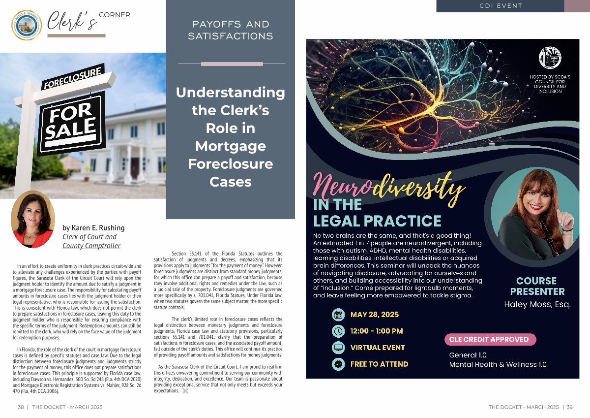 Understanding the Clerk ’ s Role in Mortgage Foreclosure Cases by Karen E . Rushing Clerk of Court and County Comptroller