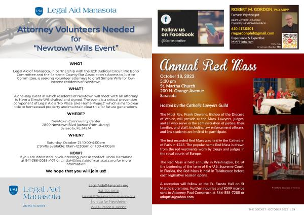 The Most Rev . Frank Dewane , Bishop of the Diocese of Venice , will preside at the Mass . Lawyers , judges , and all who serve in the administration of justice , their families , and staff , including law enforcement officers , and law students are invited to participate .