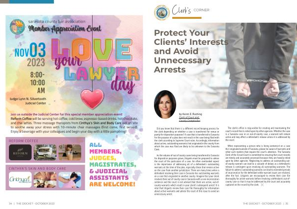 Clerk ’ s CORNER Protect Your Clients ’ Interests and Avoid Unnecessary Arrests