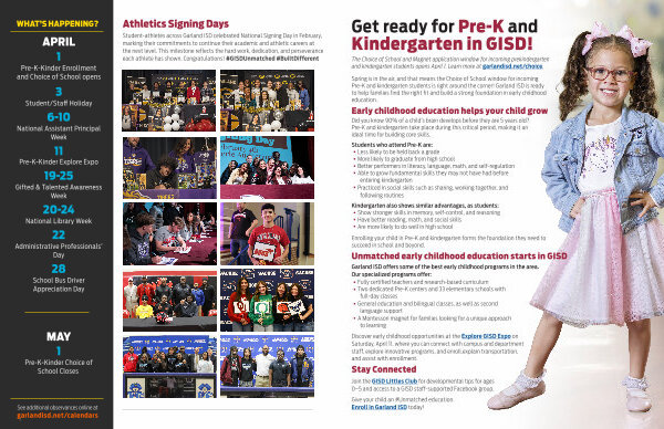 APRIL 1 Pre-K-Kinder Enrollment and Choice of School opens