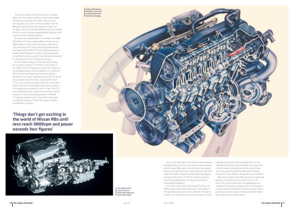 On top of the RB straight-six’ s cast iron closed-deck block with 86mm bores sits a twin-cam aluminium head equipped with 32 sodium-filled valves. The belt-driven cams operate directly onto solid bucket lifters above the valves, with shims under the buckets. Its forged crank has eight main bearing journals and has a throw of 73.7mm. All solid, strong, but not all that exceptional for a car that was considered a technological masterpiece.