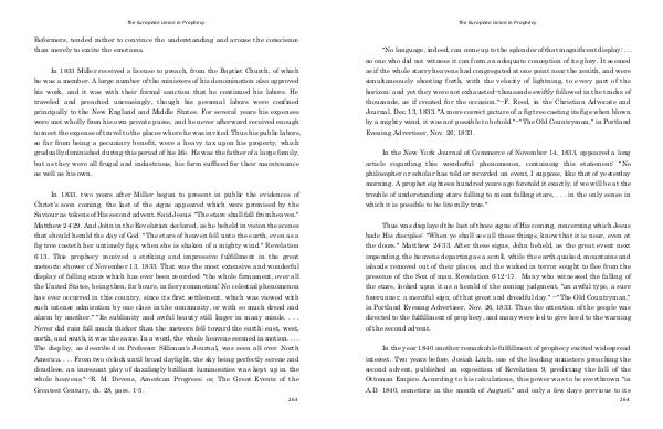 In 1833, two years after Miller began to present in public the evidences of