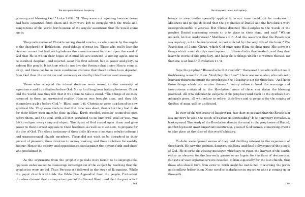 brings to view truths specially applicable to our time--could not be understood. Ministers and people declared that the prophecies of Daniel and the Revelation were incomprehensible mysteries. But Christ directed His disciples to the words of the prophet Daniel concerning events to take place in their time, and said: " Whoso readeth, let him understand." Matthew 24:15. And the assertion that the Revelation is a mystery, not to be understood, is contradicted by the very title of the book: " The Revelation of Jesus Christ, which God gave unto Him, to show unto His servants things which must shortly come to pass.... Blessed is he that readeth, and they that hear the words of this prophecy, and keep those things which are written therein: for the time is at hand." Revelation 1:1-3.