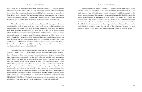 " Therefore hear now this, thou afflicted, and drunken, but not with wine: Thus saith thy Lord the Lord, and thy God that pleadeth the cause of His people, Behold, I have taken out of thine hand the cup of trembling, even the dregs of the cup of My fury; thou shalt no more drink it again: but I will put it into the hand of them that afflict thee; which have said to thy soul, Bow down, that we may go over: and thou hast laid thy body as the ground, and as the street, to them that went over." Verses 21-23. The eye of God, looking down the ages, was fixed upon the crisis which His people are to meet, when earthly powers shall be arrayed against them. Like the captive exile, they will be in fear of death by starvation or by violence. But the Holy One who divided the Red Sea before Israel, will manifest His mighty power and turn their captivity. " They shall be Mine, saith the Lord of hosts, in that day when I make up My jewels; and I will spare them, as a man spareth his own son that serveth him." Malachi 3:17. If the blood of Christ ' s faithful witnesses were shed at this time, it would not, like the blood of the martyrs, be as seed sown to yield a harvest for God.