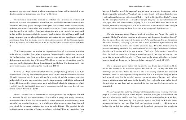 placed beyond the power of Satan, and alone with his evil angels he remains to realize