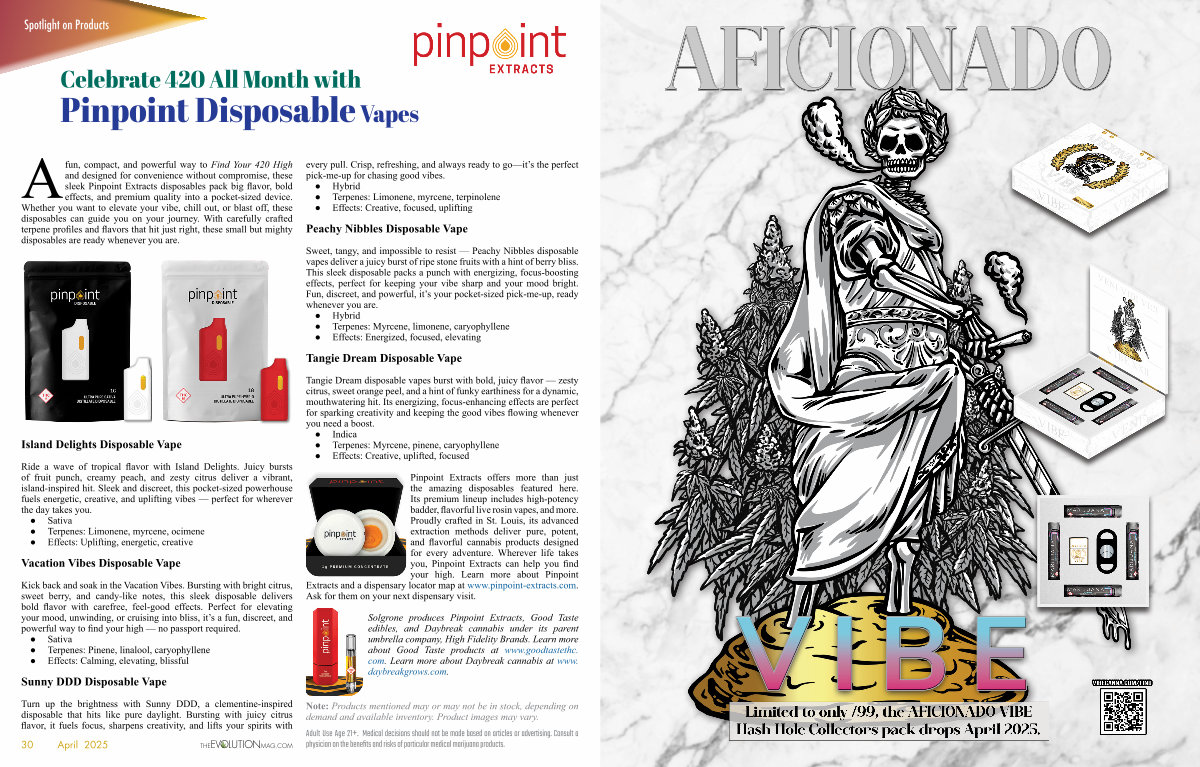 Pinpoint Extracts offers more than just the amazing disposables featured here. Its premium lineup includes high-potency badder, flavorful live rosin vapes, and more. Proudly crafted in St. Louis, its advanced extraction methods deliver pure, potent, and flavorful cannabis products designed for every adventure. Wherever life takes you, Pinpoint Extracts can help you find your high. Learn more about Pinpoint Extracts and a dispensary locator map at www. pinpoint-extracts. com. Ask for them on your next dispensary visit.