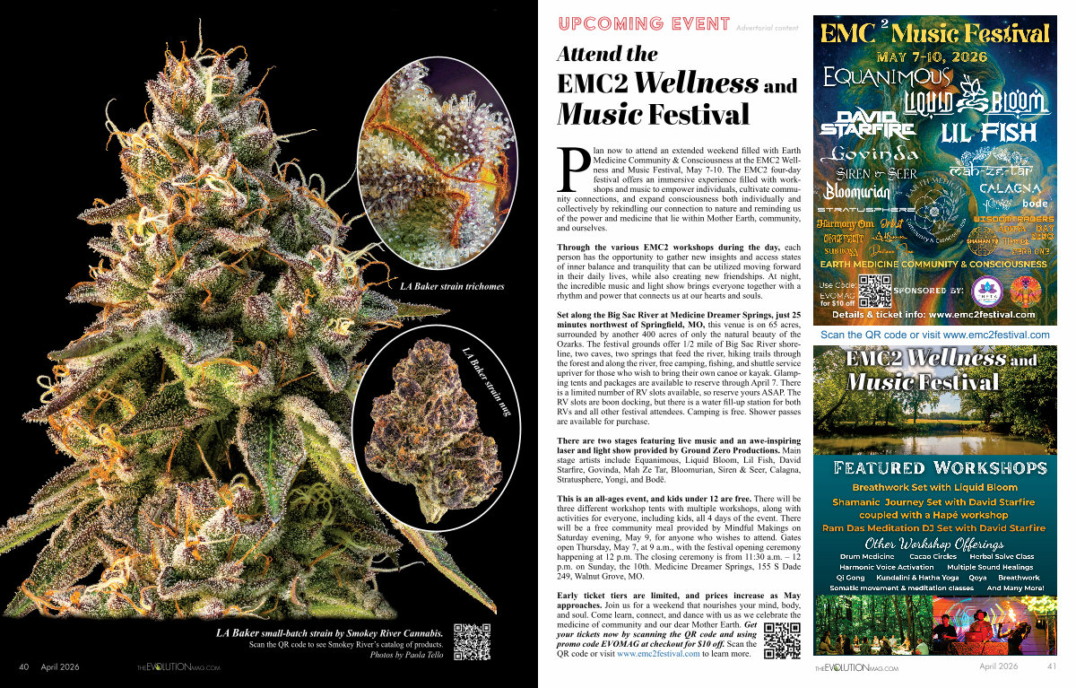 Early ticket tiers are limited, and prices increase as May approaches. Join us for a weekend that nourishes your mind, body, and soul. Come learn, connect, and dance with us as we celebrate the medicine of community and our dear Mother Earth. Get your tickets now by scanning the QR code and using promo code EVOMAG at checkout for $ 10 off. Scan the QR code or visit www. emc2festival. com to learn more.