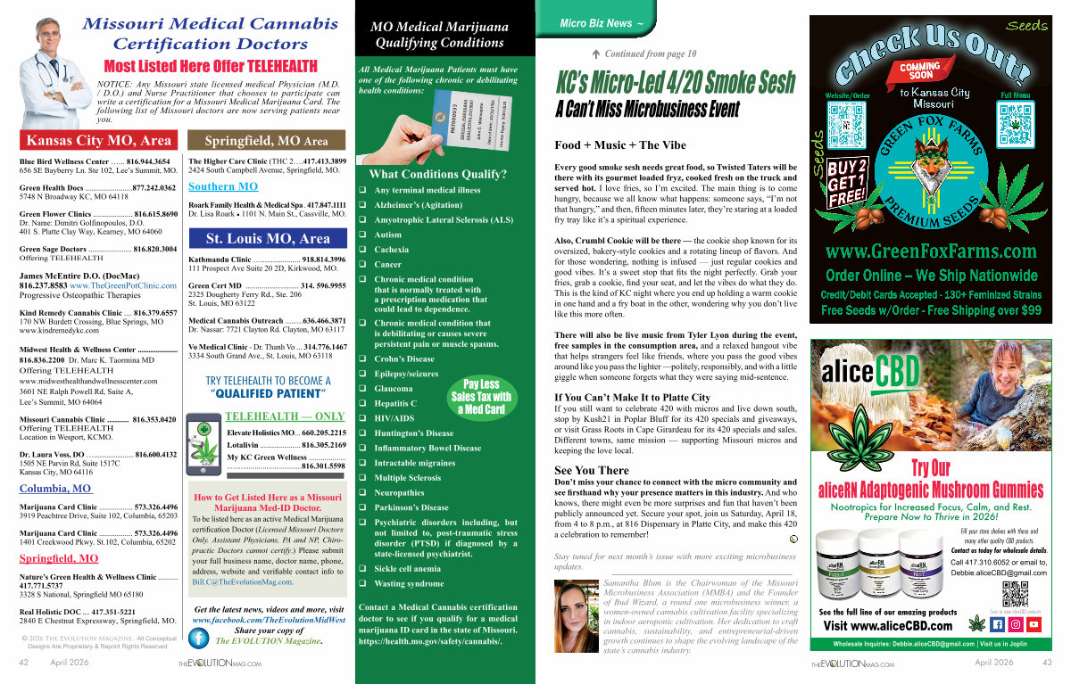 To be listed here as an active Medical Marijuana certification Doctor( Licensed Missouri Doctors Only. Assistant Physicians, PA and NP, Chiropractic Doctors cannot certify.) Please submit your full business name, doctor name, phone, address, website and verifiable contact info to Bill. C @ TheEvolutionMag. com.