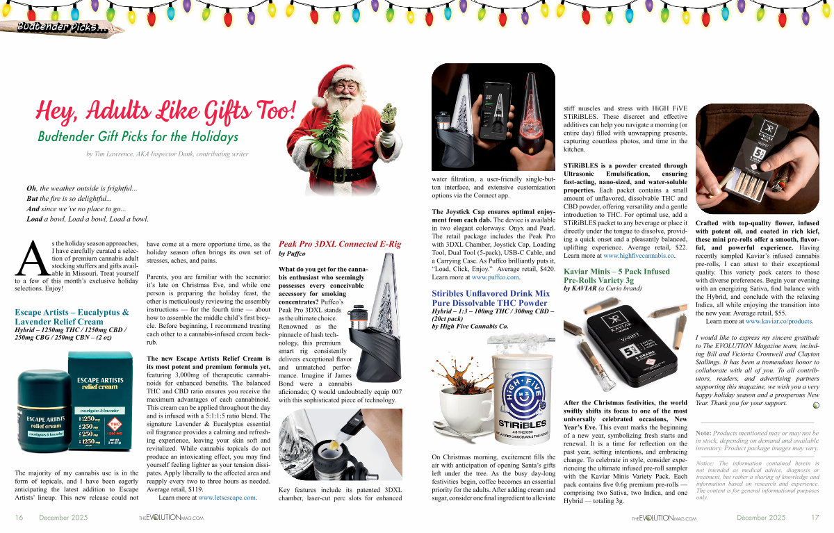 I would like to express my sincere gratitude to The EVOLUTION Magazine team, including Bill and Victoria Cromwell and Clayton Stallings. It has been a tremendous honor to collaborate with all of you. To all contributors, readers, and advertising partners supporting this magazine, we wish you a very happy holiday season and a prosperous New Year. Thank you for your support.