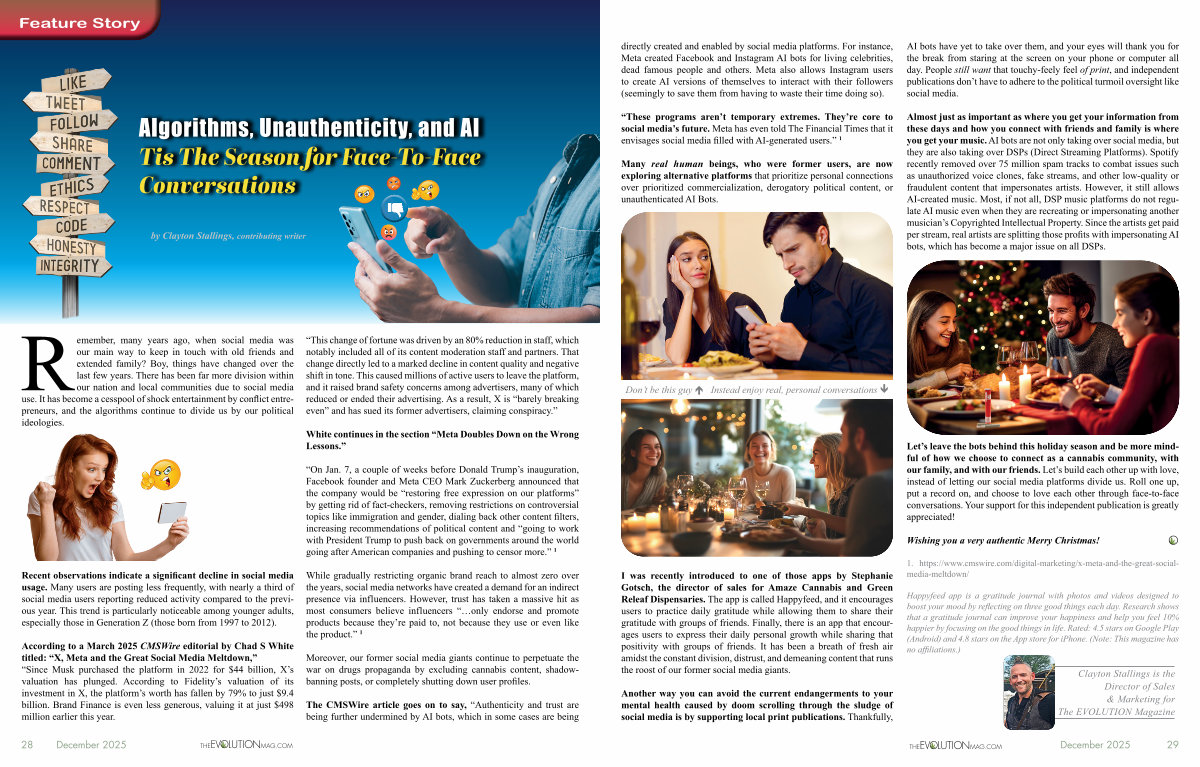 Let’ s leave the bots behind this holiday season and be more mindful of how we choose to connect as a cannabis community, with our family, and with our friends. Let’ s build each other up with love, instead of letting our social media platforms divide us. Roll one up, put a record on, and choose to love each other through face-to-face conversations. Your support for this independent publication is greatly appreciated!