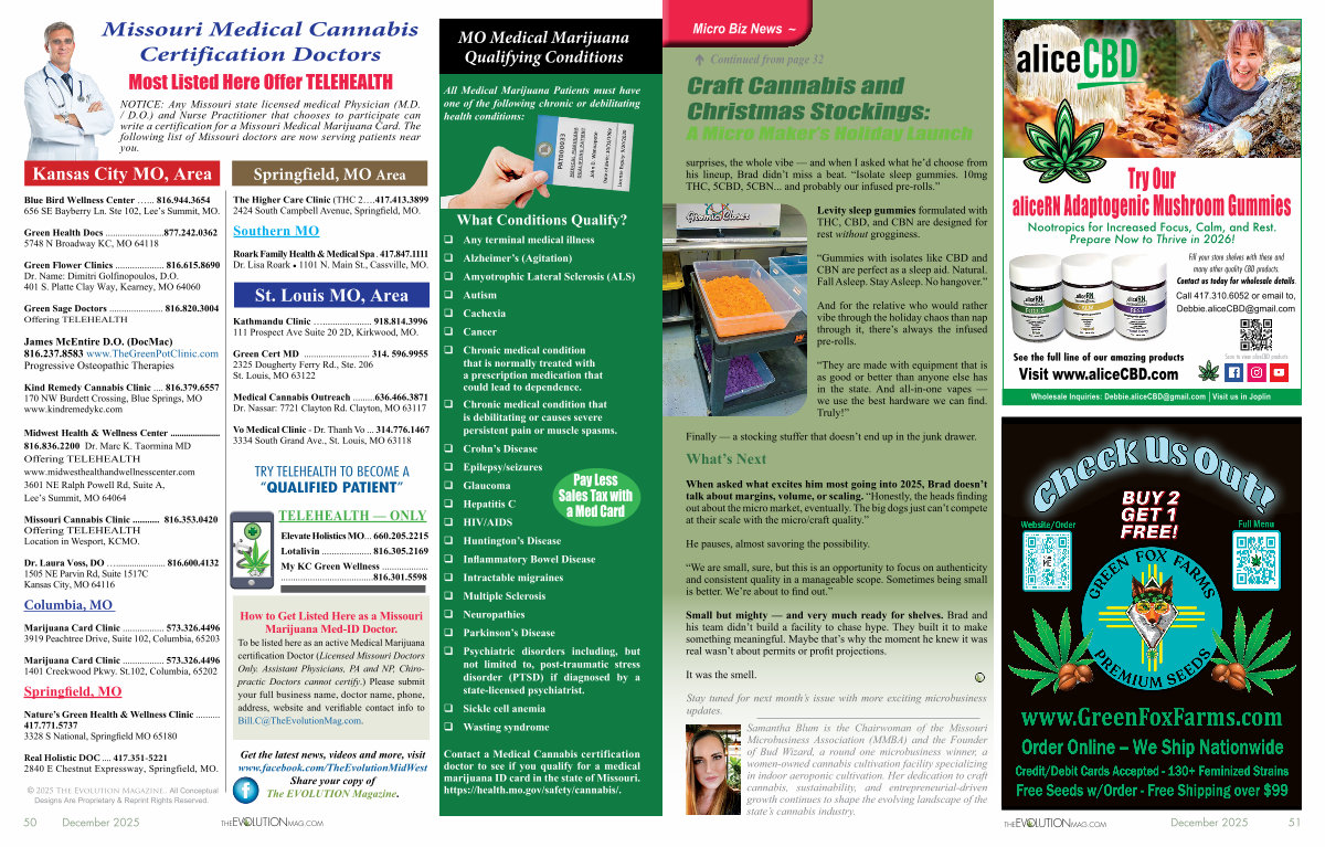 To be listed here as an active Medical Marijuana certification Doctor( Licensed Missouri Doctors Only. Assistant Physicians, PA and NP, Chiropractic Doctors cannot certify.) Please submit your full business name, doctor name, phone, address, website and verifiable contact info to Bill. C @ TheEvolutionMag. com.