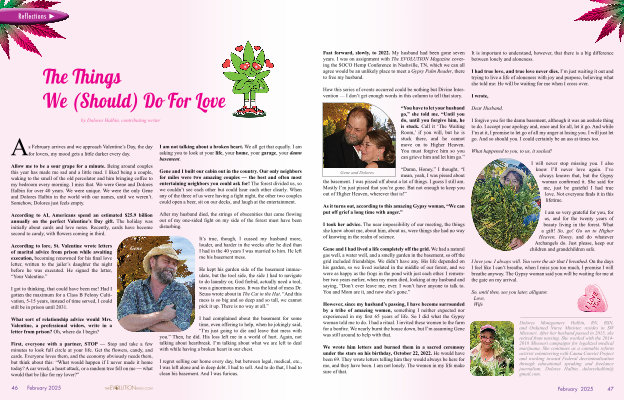 Fast forward , slowly , to 2022 . My husband had been gone seven years . I was on assignment with The EVOLUTION Magazine covering the SOCO Hemp Conference in Nashville , TN , which we can all agree would be an unlikely place to meet a Gypsy Palm Reader , there to free my husband .