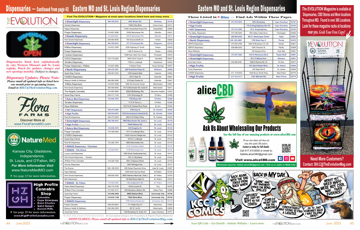 DISPENSARIES: Please email all updated info to Bill. C @ TheEvolutionMag. com.