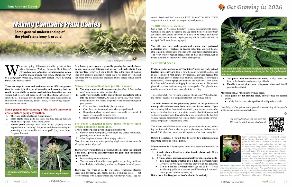 Get Growing in 2026 article“ Seeds and Sex” in the April 2025 issue of The EVOLUTION Magazine for info on auto versus photoperiod plants.)