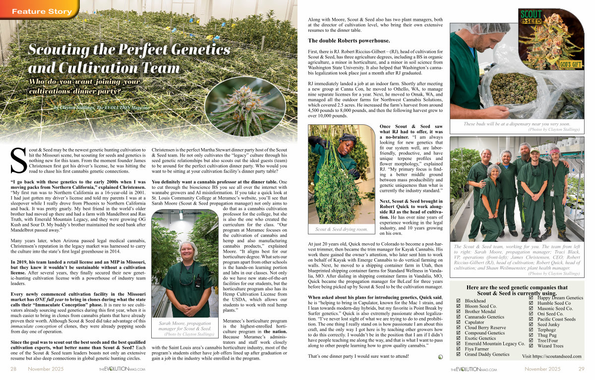 Christensen is the perfect Martha Stewart dinner party host of the Scout & Seed team. He not only cultivates the“ legacy” culture through his seed genetic relationships but also scouts out the ideal guests( team) to be around for the perfect cultivation dinner party. Who would you want to be sitting at your cultivation facility’ s dinner party table?