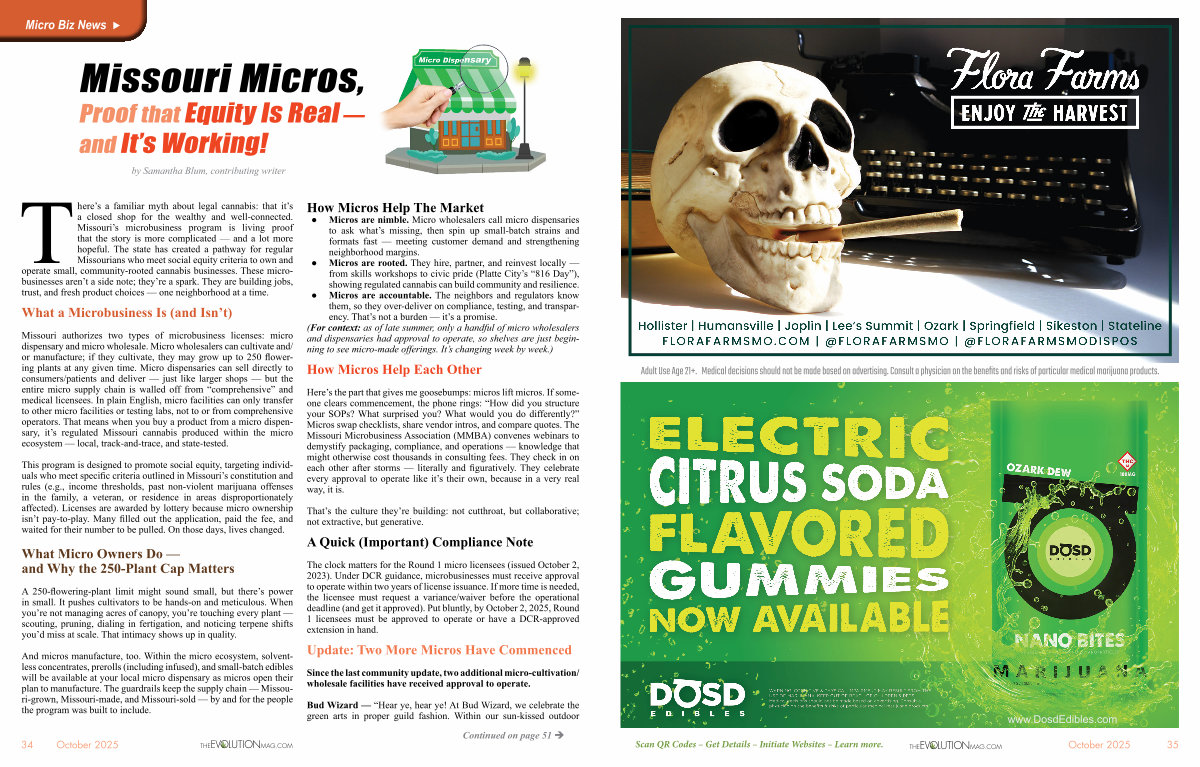 And micros manufacture, too. Within the micro ecosystem, solventless concentrates, prerolls( including infused), and small-batch edibles will be available at your local micro dispensary as micros open their plan to manufacture. The guardrails keep the supply chain— Missouri-grown, Missouri-made, and Missouri-sold— by and for the people the program was built to include.