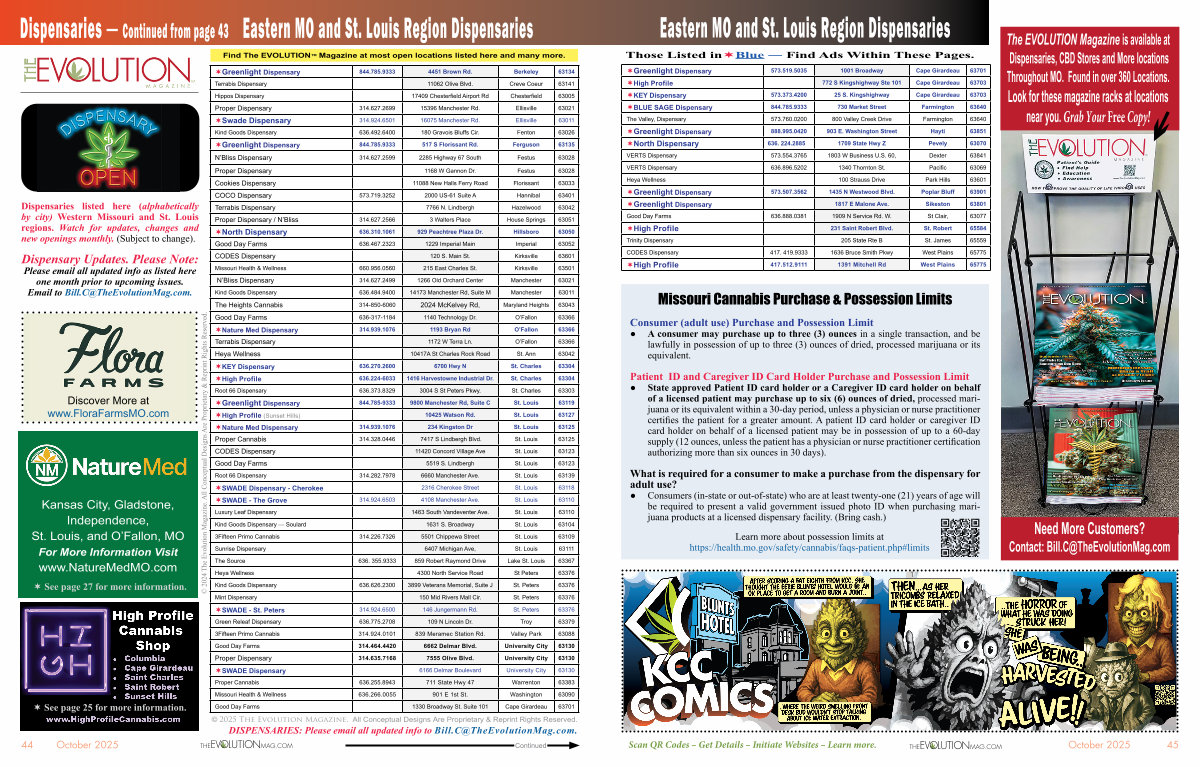 DISPENSARIES: Please email all updated info to Bill. C @ TheEvolutionMag. com.