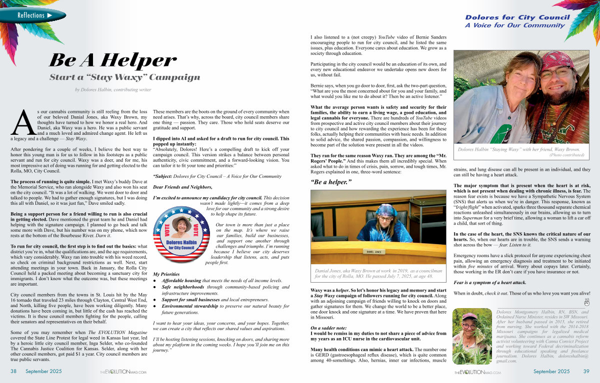Waxy was a helper. So let’ s honor his legacy and memory and start a Stay Waxy campaign of followers running for city council. Along with an adjoining campaign of friends willing to knock on doors and gather signatures for them. We change the world to be a better place, one door knock and one signature at a time. We have proven that here in Missouri.