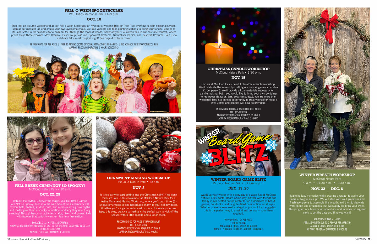 Step into an autumn wonderland at our Fall-o-ween Spooktacular! Wander a winding Trick-or-Treat Trail overflowing with seasonal sweets, stop at our monster lab and create your own awesome ghoul, visit our vendors and face-painting stations to bring your fanciful visions to life, and settle in for hayrides( for a nominal fee) through the moonlit woods. Show off your Halloween flair in our costume contest, where prizes await those crowned Most Creative, Best Group Costume, Spookiest Costume, Naturalists’ Choice, and Best Pet Costume. Join us to celebrate fall’ s most magical night! See page 4 to learn more!